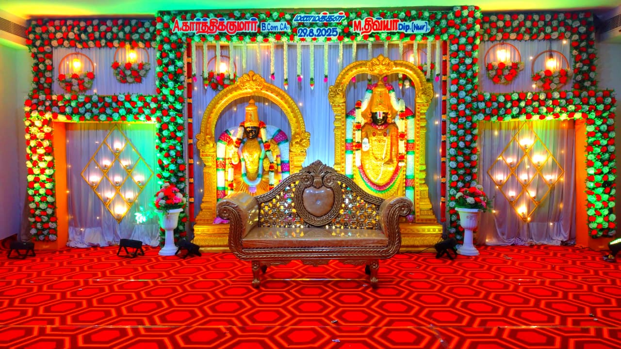 colorful drapes, intricate patterns, lush floral arrangements, personalized